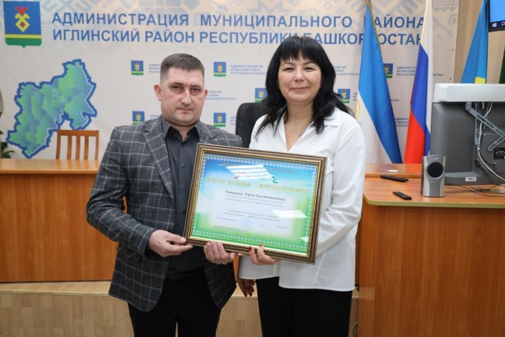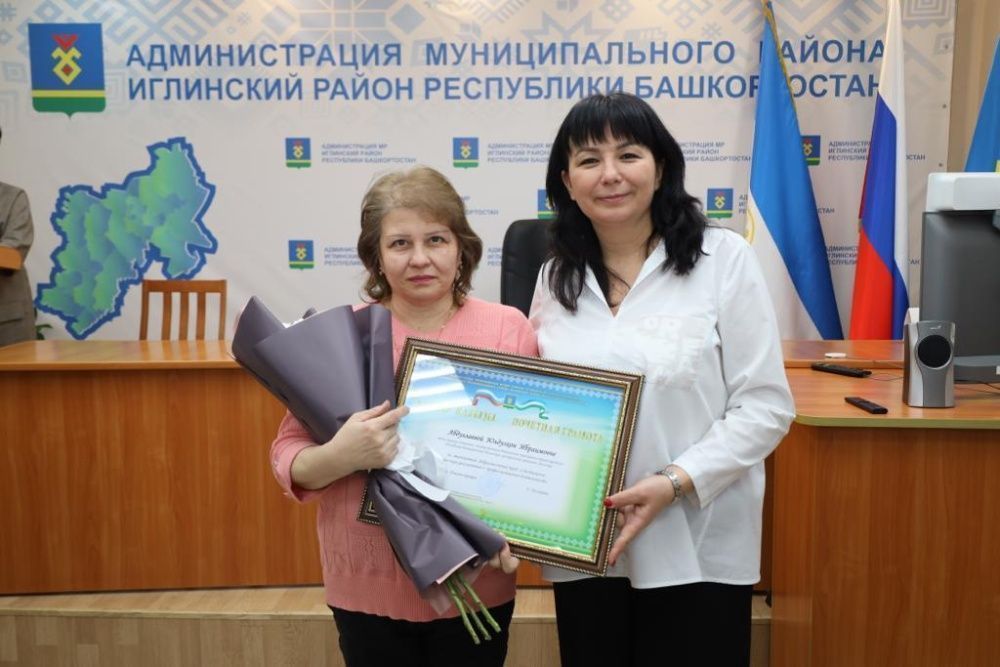 Почетные грамоты Главы Администрации Иглинского района из рук Насыровой Гюзель Раисовны получили: врач-акушер-гинеколог Абдуллаева Юлдузхон Ибраимовна и врач-стоматолог Чапыркин Юрий Константинович, а благодарственное письмо вручили медицинскому лабораторному технику Ягафаровой Гульнур Фаильевне!
