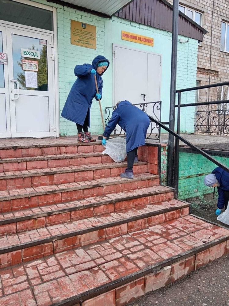 Сегодня сотрудники Иглинской ЦРБ дружно вышли на субботник, чтобы сделать нашу больницу ещё чище и уютнее!