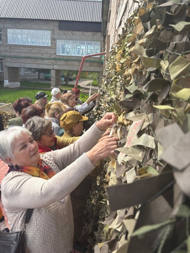 В завершение мероприятия гости привязали к маскировочным сетям ленты с теплыми пожеланиями военнослужащим, участвующим в СВО